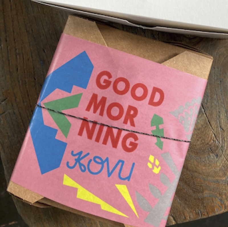 おむすび2種類 / 個包装(甘いおかか・鮭胡麻)、鶏揚げ1個、野菜浅漬け、出汁巻き玉子焼き、ちくわ焼き