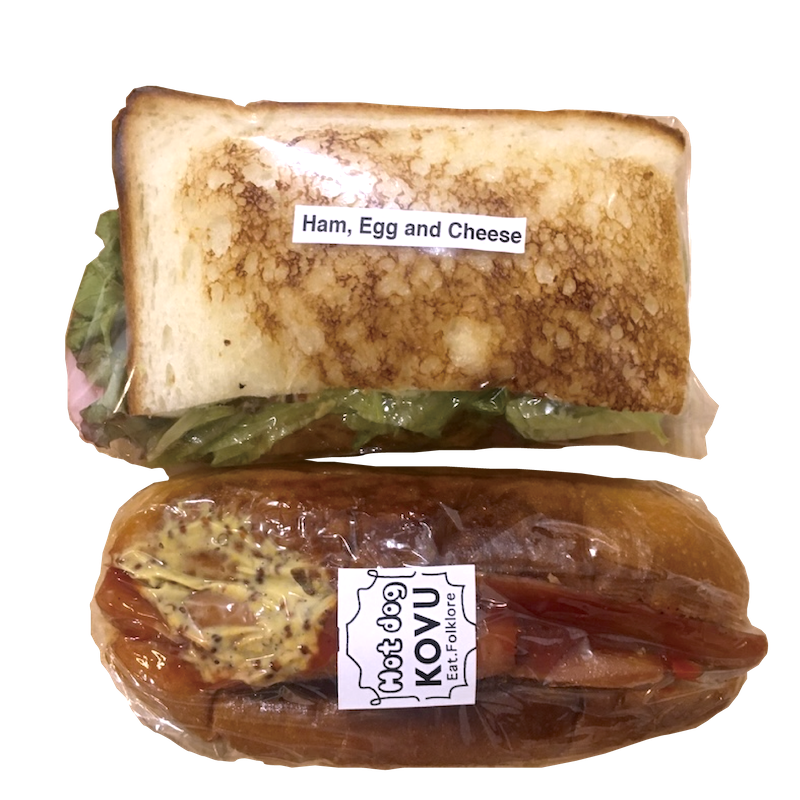 HOTDOGとハムチーズエッグ ベーコンのブレッドメニュー。2種類(個包装)一箱パッケージ、お一人様分 ✔ サンドイッチはなるべく偶数のご注文でお願いいたします。